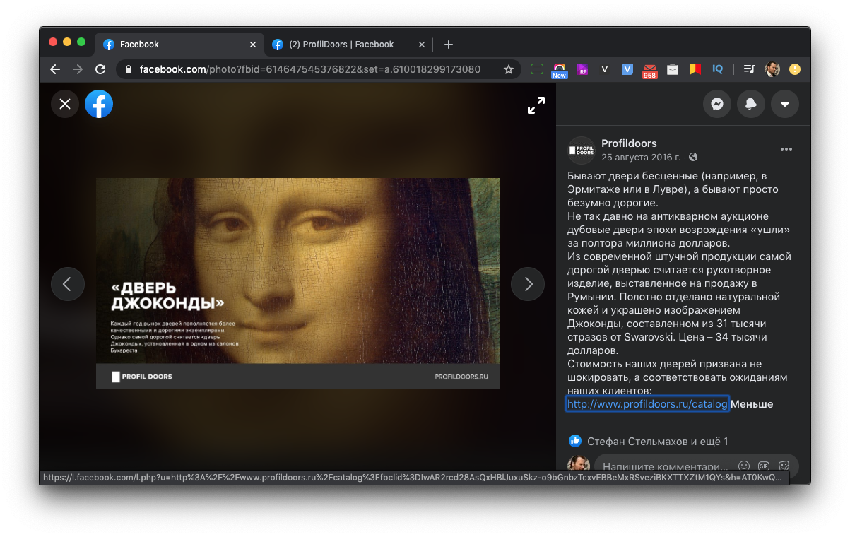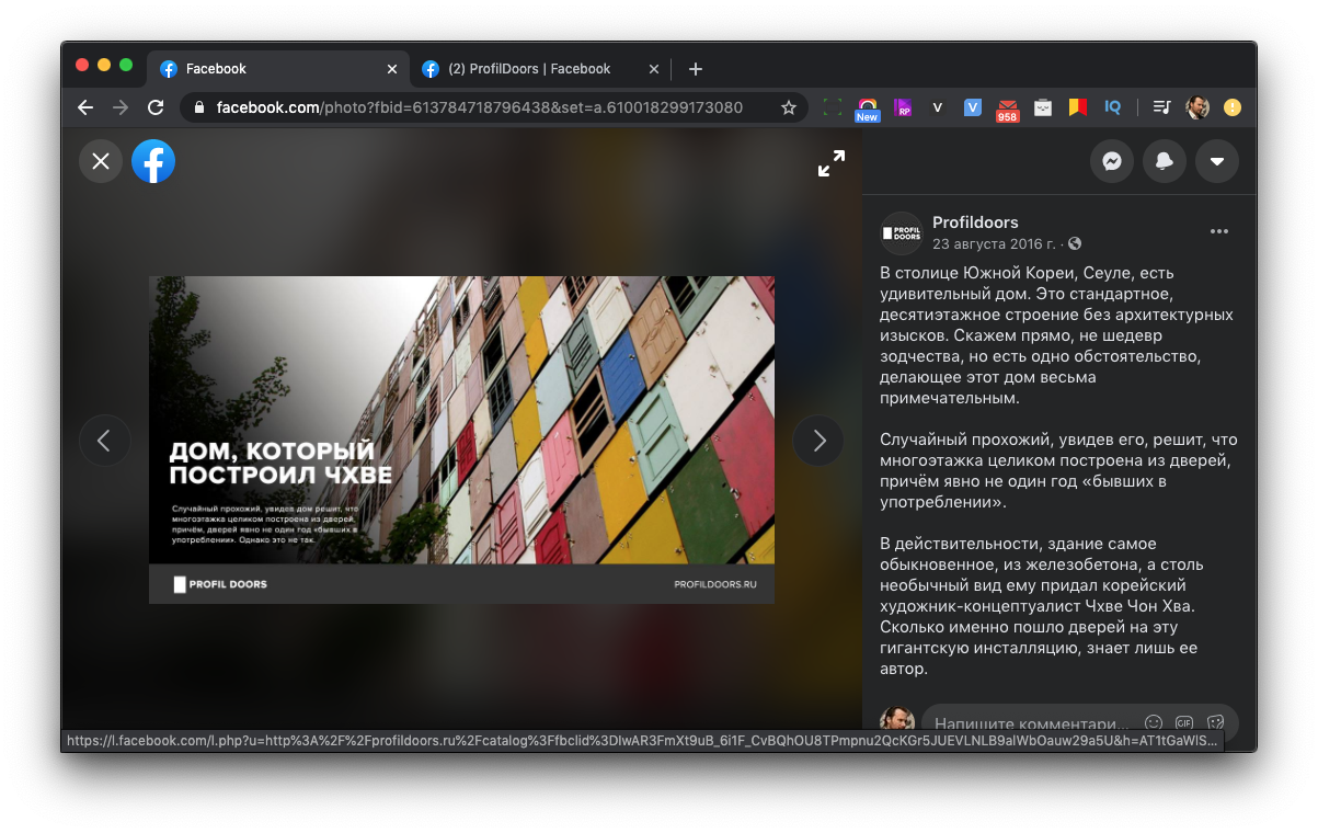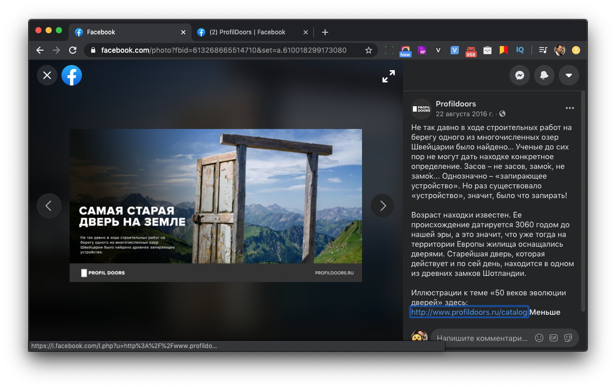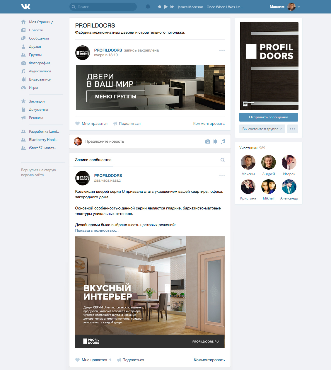 Тематическая группа с акцентом в оформлении на интерьеры с использованием дверей компании.
